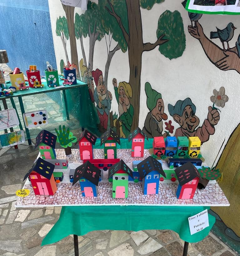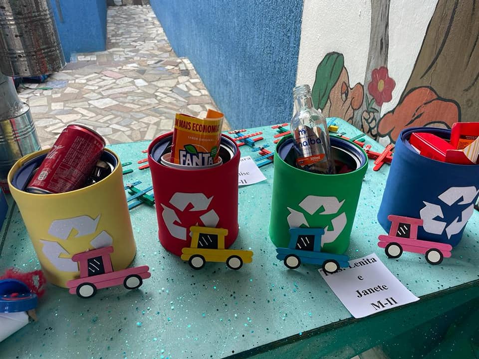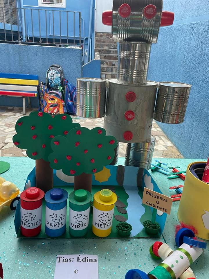 De forma criativa, os alunos trabalharam com muita diversão junto com as professoras, reaproveitando, reciclando e criando diversos objetos com materiais recicláveis.