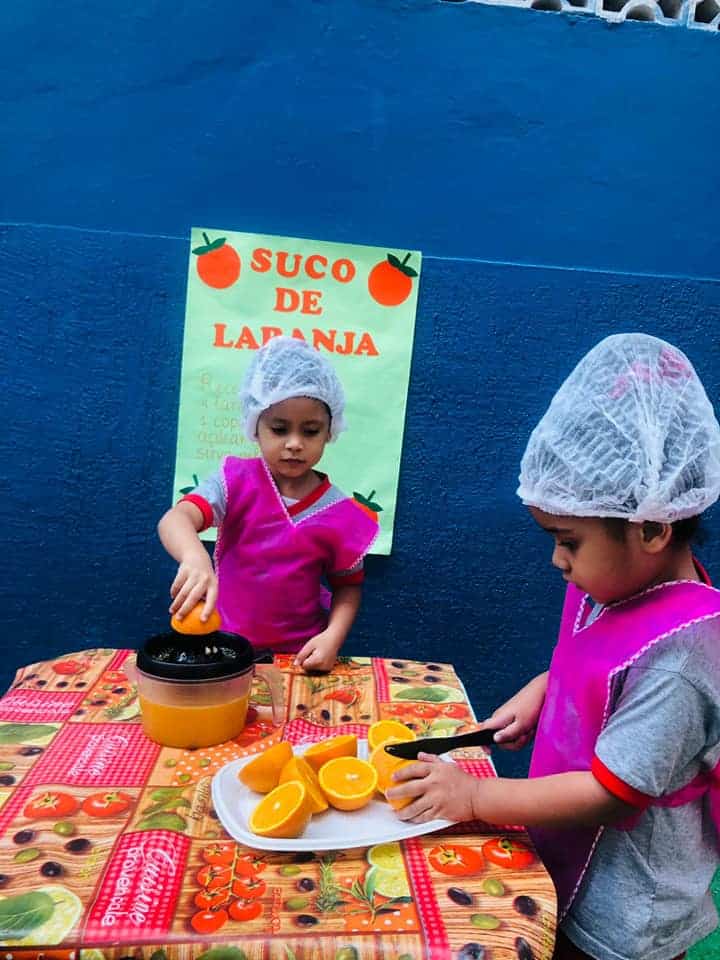 Hoje nossos alunos prepararam o próprio suco para o lanche da tarde!